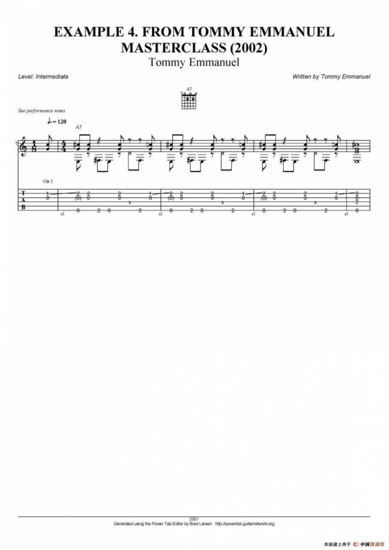 tommy emmanuel:masterclass example-7(指弹吉他)吉他谱,简谱"