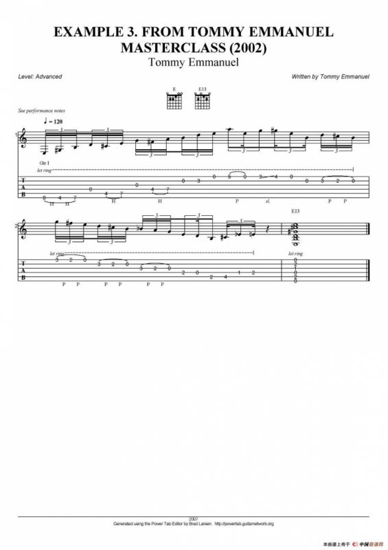 tommy emmanuel:masterclass example-3(指弹吉他)吉他谱,简谱"