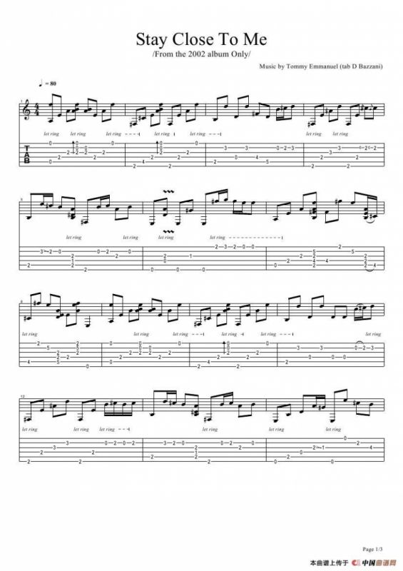 tommy emmanuel:stay close to me(指弹吉它)吉他谱,简谱"
