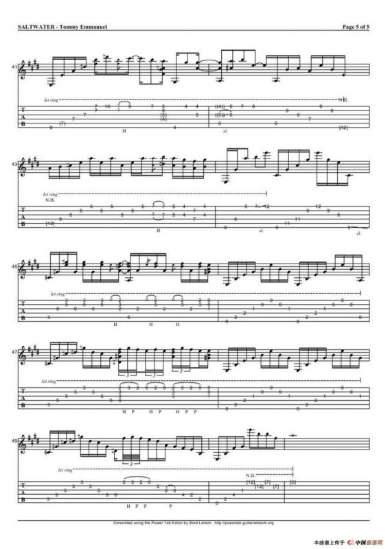 tommy emmanuel: saltwater(指弹吉它)吉他谱,简谱"
