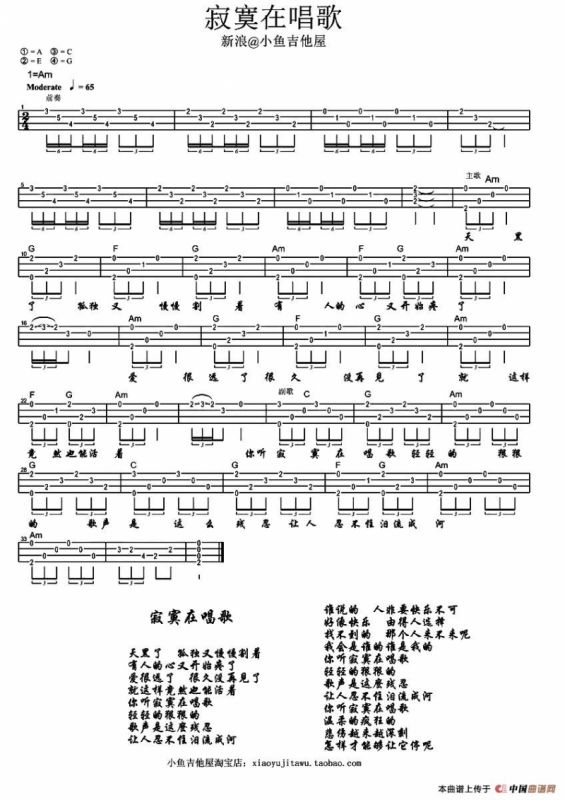 寂寞在唱歌吉他谱(尤克里里谱),寂寞在唱歌简谱"