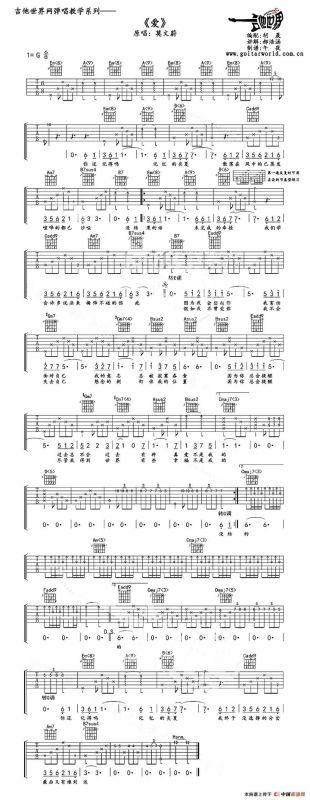 爱吉他谱(莫文蔚演唱、胡晨编配、午夜制谱版),爱简谱"
