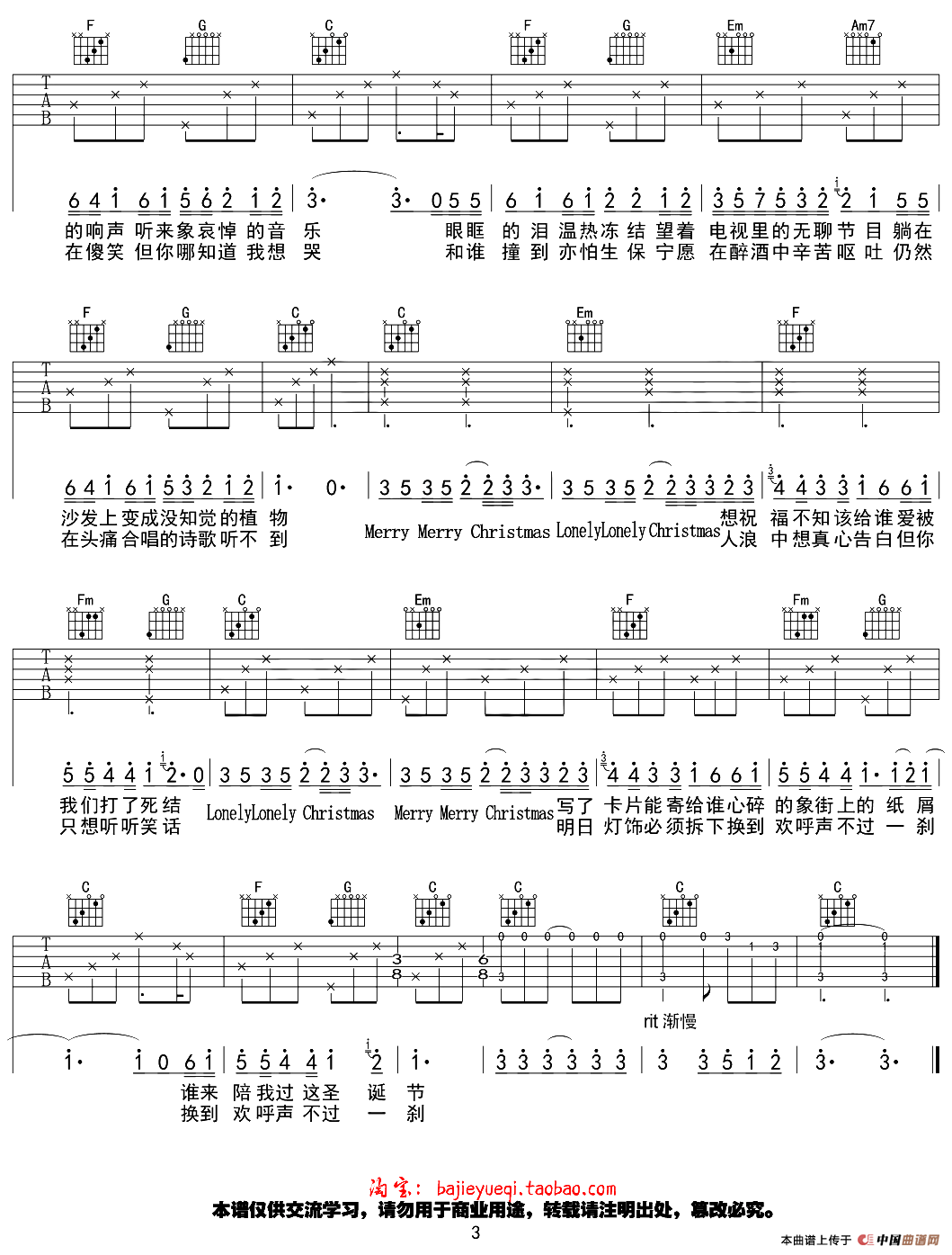 圣诞结吉他谱(3个版本),圣诞结简谱"
