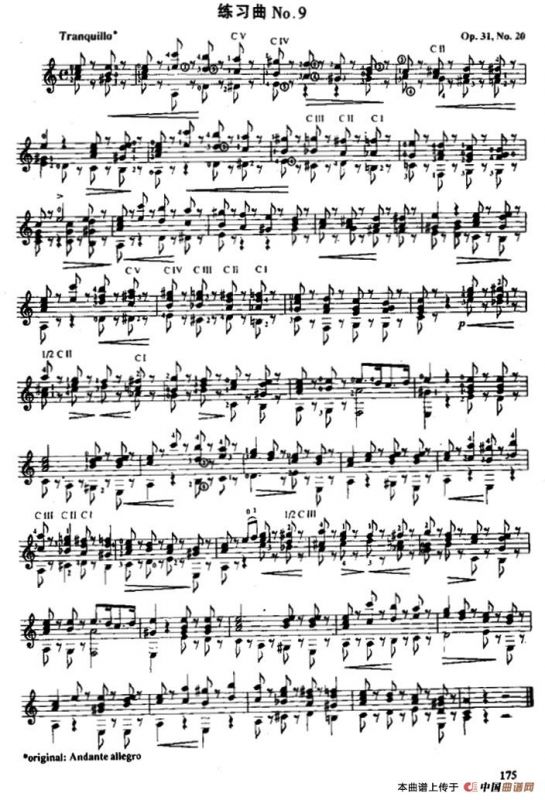 费尔南多·索尔 古典吉他练习曲 No.9(Op.31 No.20)吉他谱,简谱"