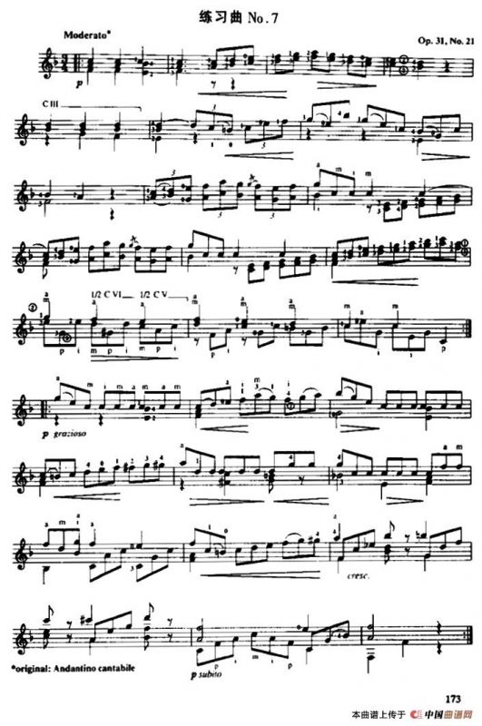 费尔南多·索尔 古典吉他练习曲 No.(Op.31 No.21)吉他谱,简谱"