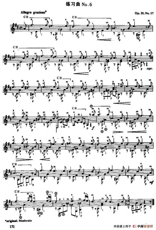 费尔南多·索尔 古典吉他练习曲 No.6(Op.35 No.17)吉他谱,简谱"