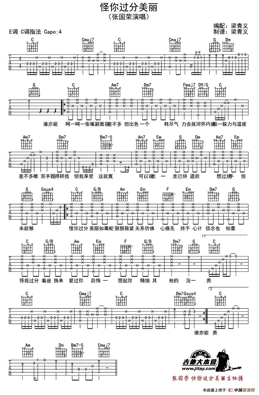 怪你过份美丽吉他谱,怪你过份美丽简谱"