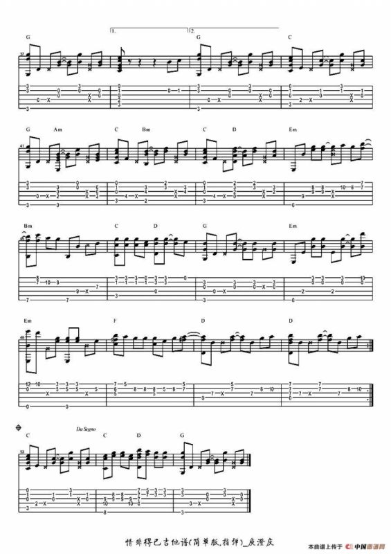 情非得已吉他谱(指弹谱简单版),情非得已简谱"