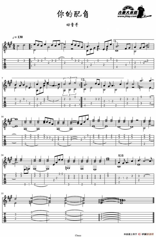 你的配角吉他谱(指弹谱),你的配角简谱"