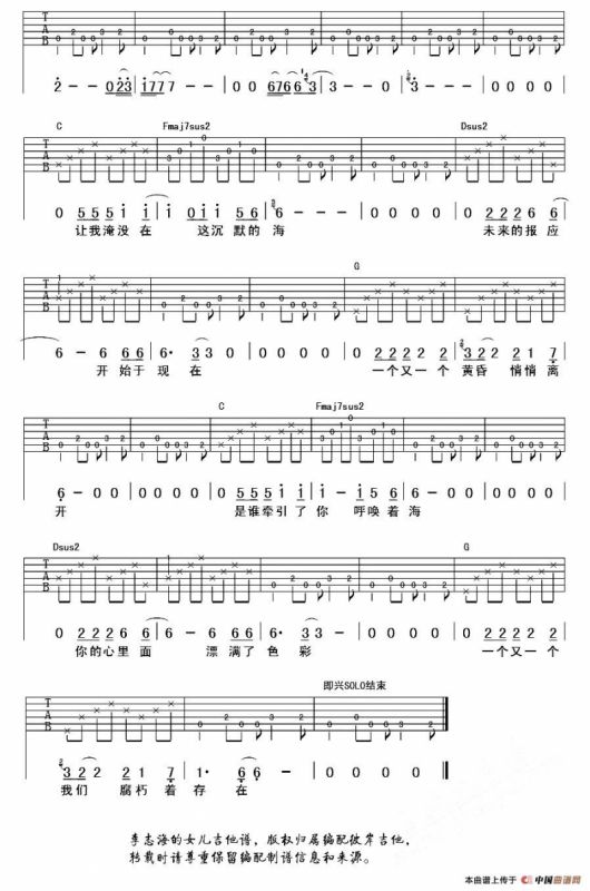 海的女儿吉他谱(李志词曲、延麟编配版),海的女儿简谱"