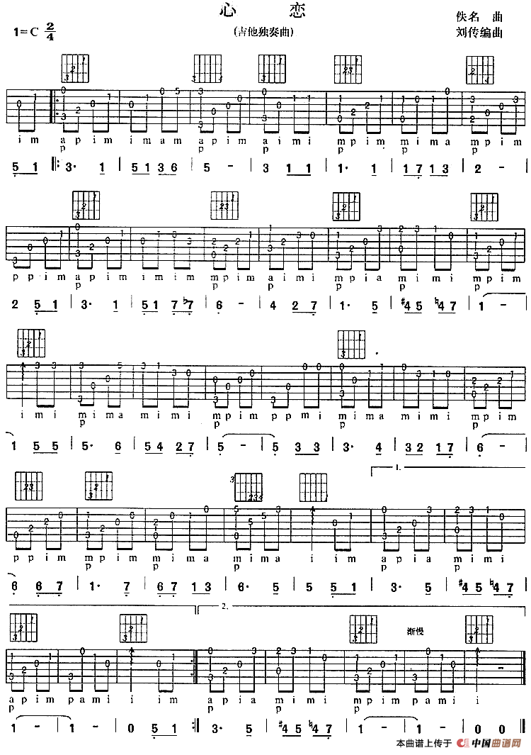 虞美人吉他谱(独奏曲),虞美人简谱"