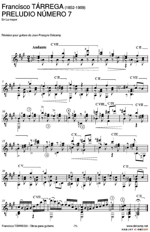 PRELUDIO NUMERO 7(En La mayor)(古典吉他)吉他谱,简谱"