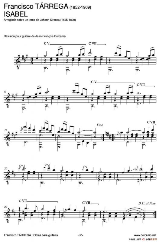 ISABEL(Arreglado sobre un tema de Johann Strauss(1825-1899))(古典吉他)吉他谱,简谱"