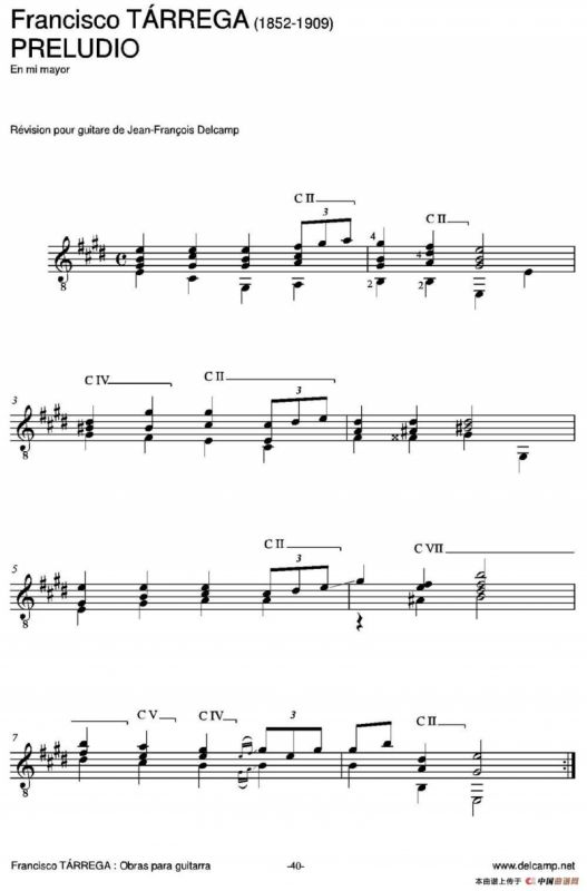 PRELUDIO(En mi mayor)吉他谱(古典吉他),PRELUDIO(En mi mayor)简谱"