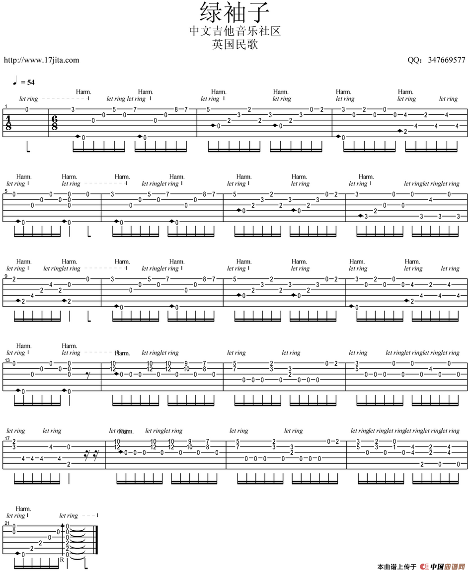 绿袖子吉他谱(指弹谱),绿袖子简谱"