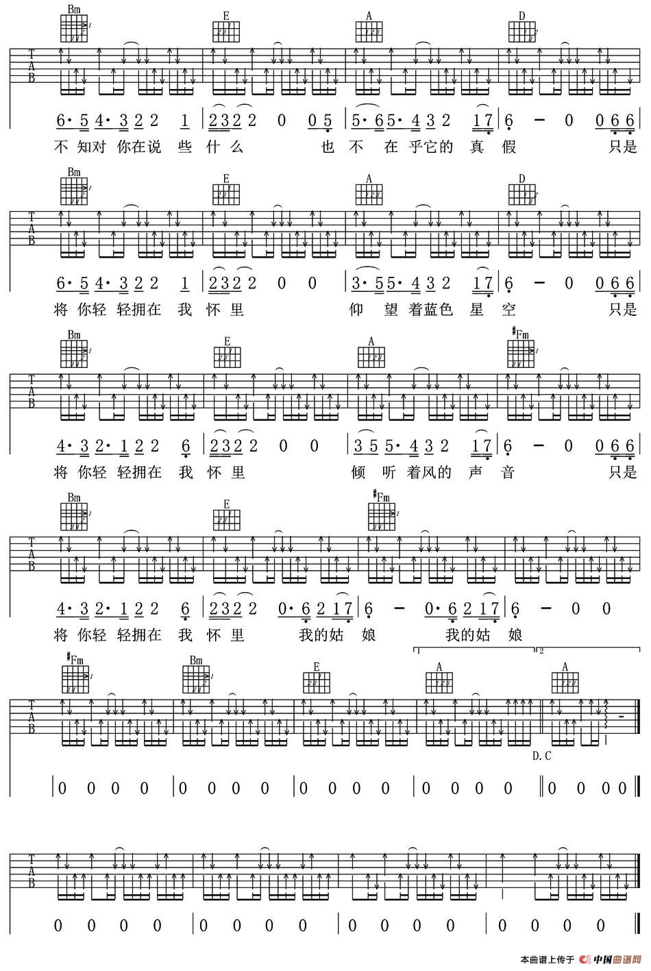 姑娘吉他谱(阿潘音乐工场编配版),姑娘简谱"