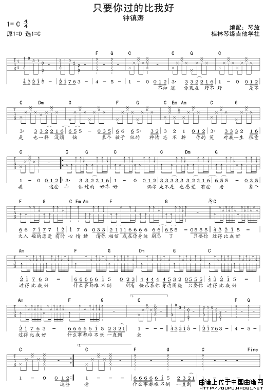 只要你过得比我好吉他谱,只要你过得比我好简谱"