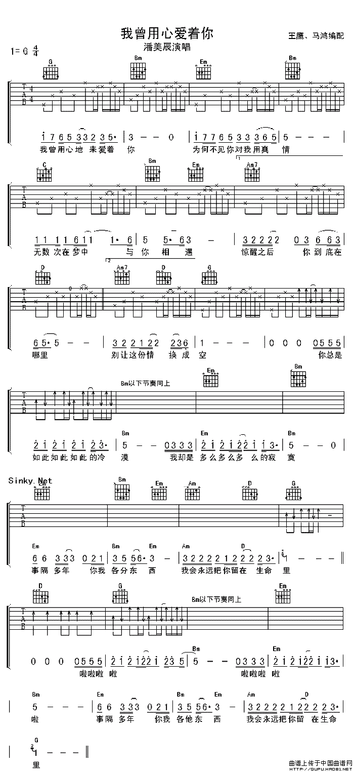 我曾用心爱着你吉他谱,我曾用心爱着你简谱"