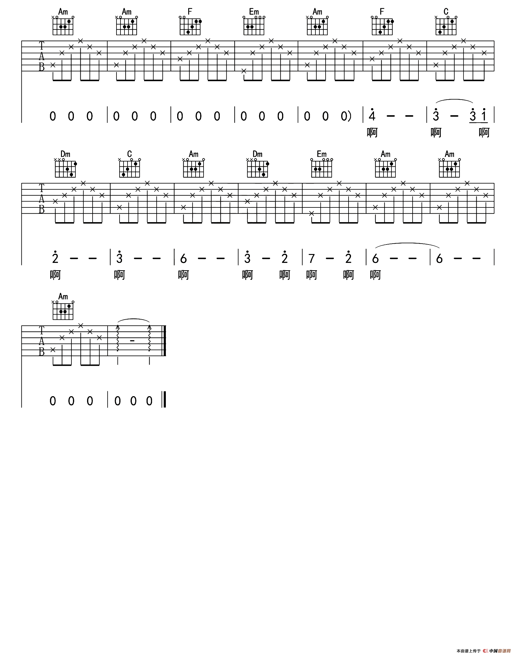 在,也不见吉他谱,在,也不见简谱"