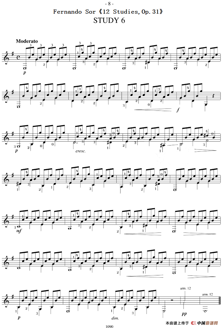 Fernando Sor《12 Studies,Op.31》(STUDY 6)吉他谱,简谱"