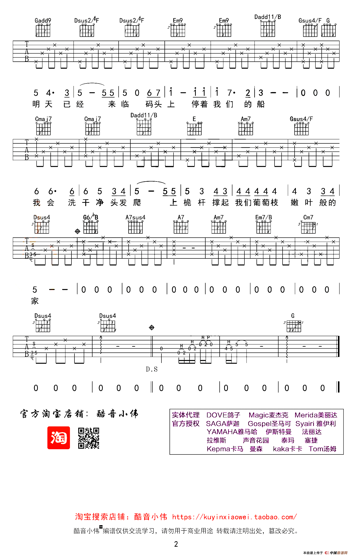 米店吉他谱(酷音小伟编配版),米店简谱"