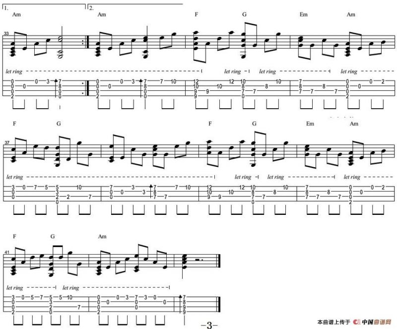 亚麻色头发的少女吉他谱(尤克里里指弹谱),亚麻色头发的少女简谱"
