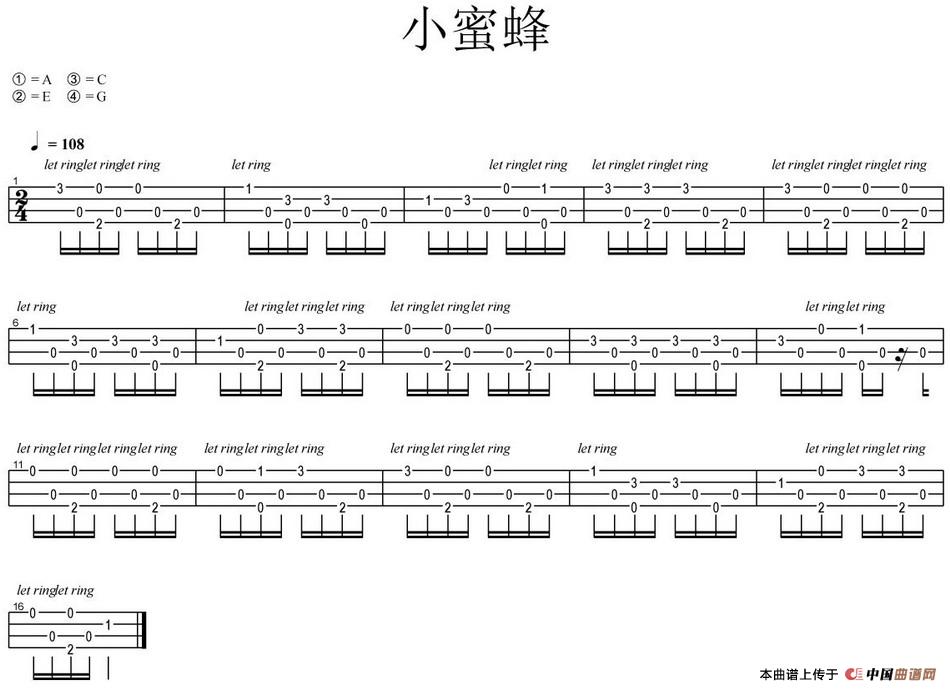 小蜜蜂吉他谱(尤克里里弹唱谱),小蜜蜂简谱"