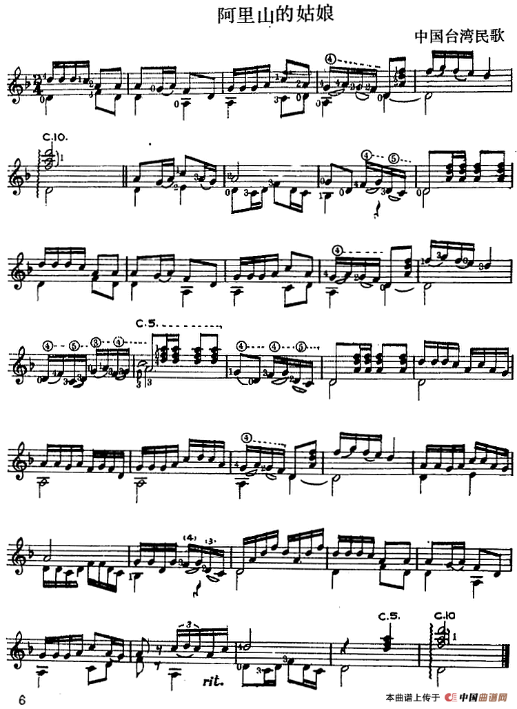 西班牙吉他独奏曲:阿里山的姑娘吉他谱,西班牙吉他独奏曲:阿里山的姑娘简谱"