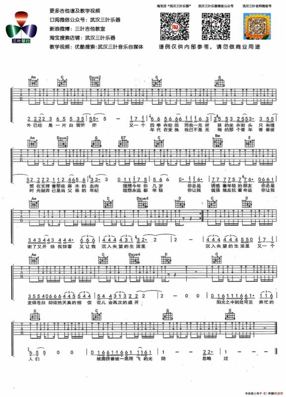 米店吉他谱(武汉三叶乐器编配版),米店简谱"
