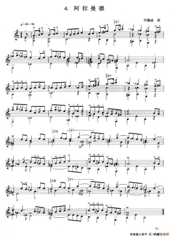 古典吉他考级五级外国乐曲A组吉他谱(4首),古典吉他考级五级外国乐曲A组简谱"
