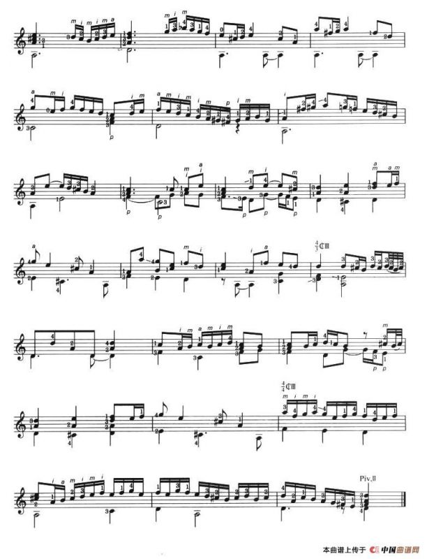 古典吉他考级七级外国乐曲B组吉他谱(2、卡纳利奥斯),古典吉他考级七级外国乐曲B组简谱"