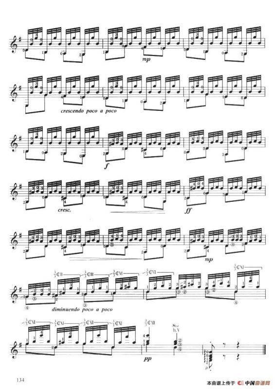 古典吉他考级七级外国乐曲C组吉他谱(2、蜂鸟),古典吉他考级七级外国乐曲C组简谱"