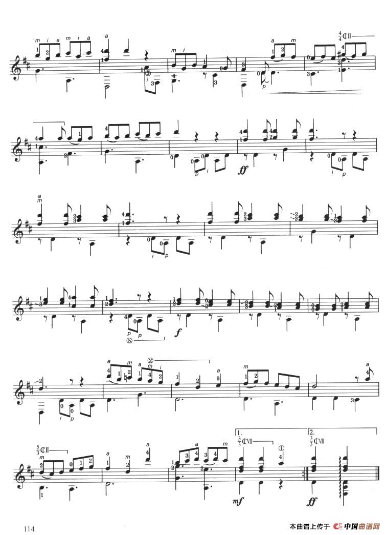 古典吉他考级八级中国乐曲吉他谱(彝族舞曲),古典吉他考级八级中国乐曲简谱"