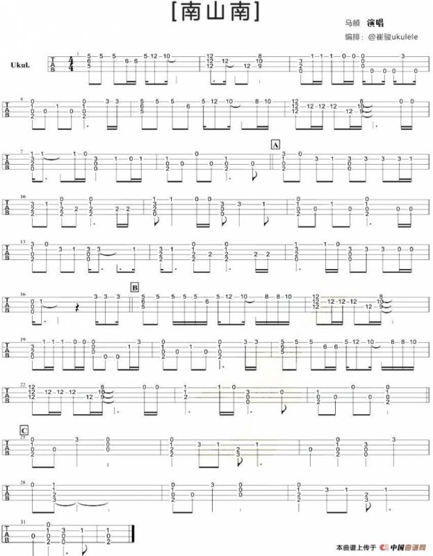 南山南吉他谱(尤克里里指弹谱),南山南简谱"