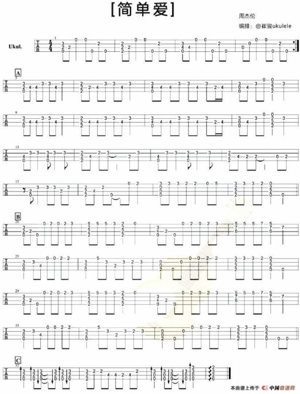 简单爱吉他谱(尤克里里指弹谱),简单爱简谱"