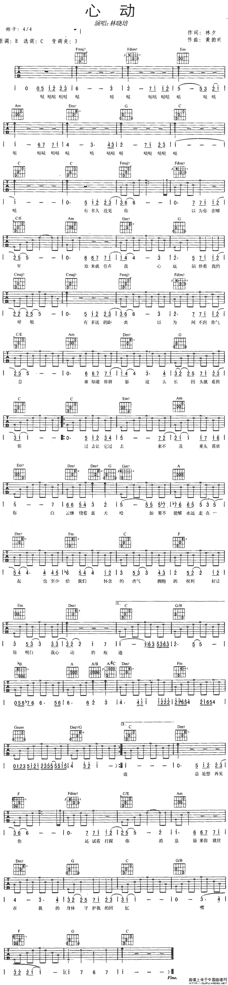 心动吉他谱(林夕词 黄韵玲曲),心动简谱"