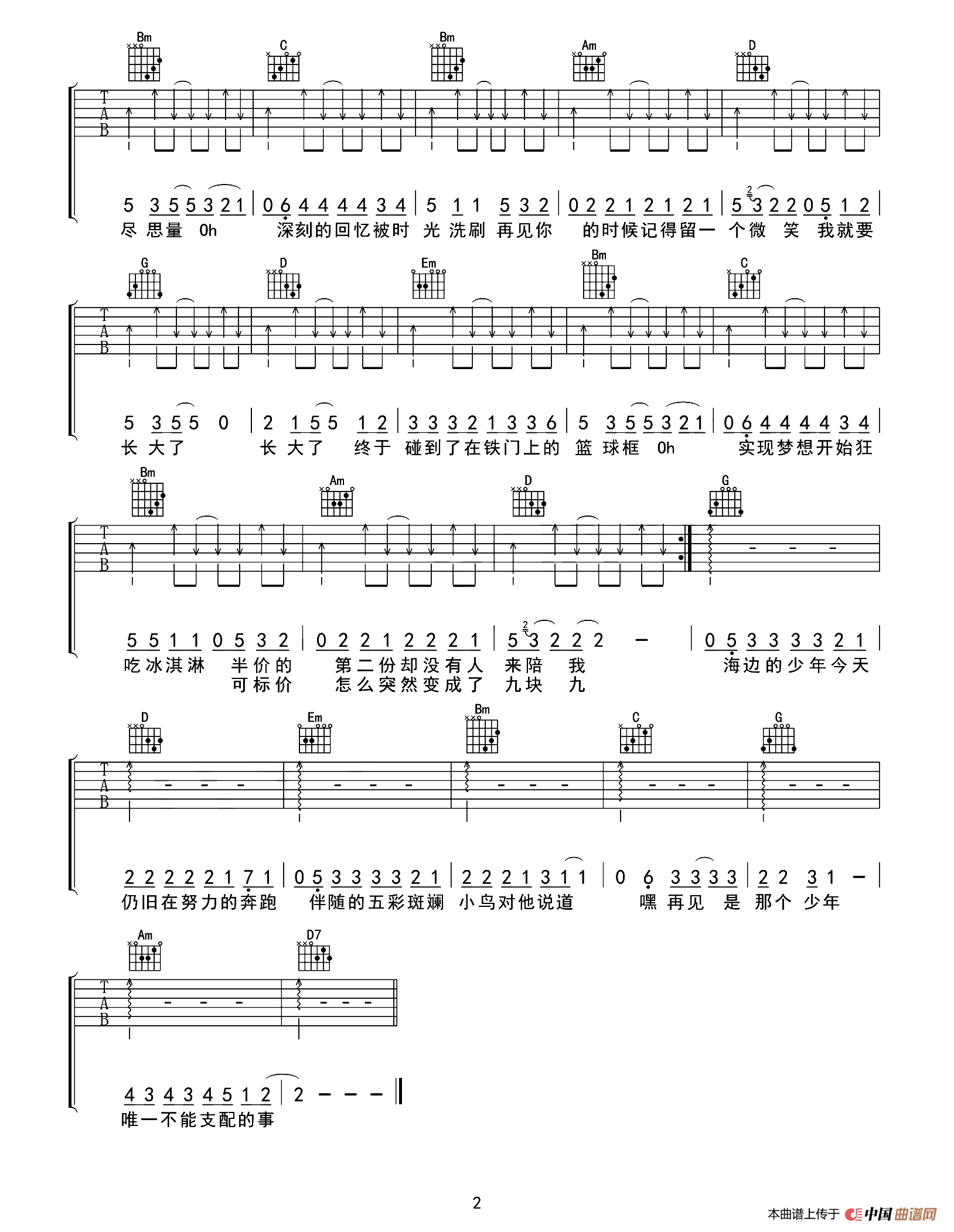 哗啦啦少年再见吉他谱,哗啦啦少年再见简谱"