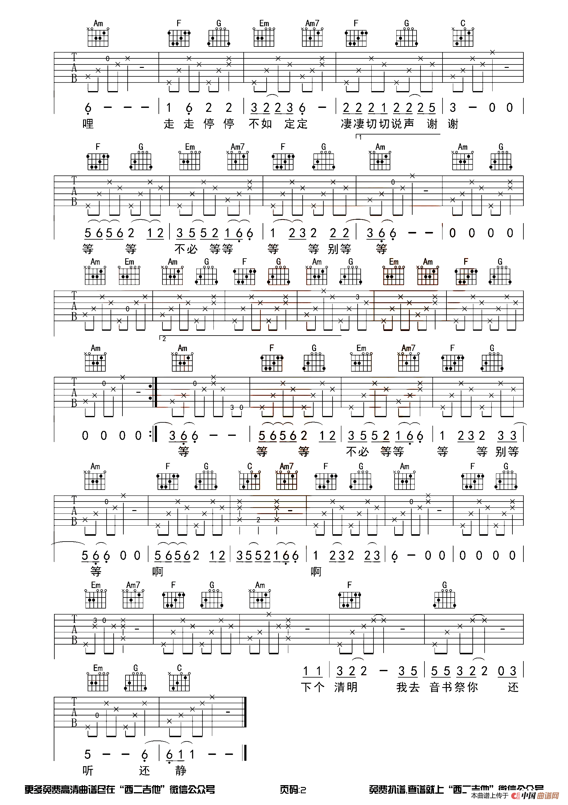 胡广生吉他谱(西二吉他编配版),胡广生简谱"