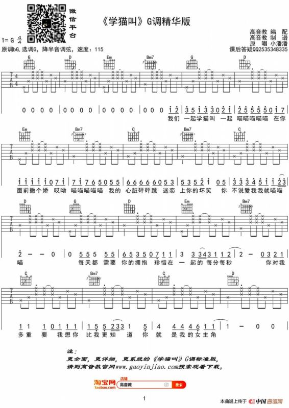 学猫叫吉他谱(高音教编配?版),学猫叫简谱"