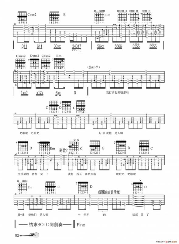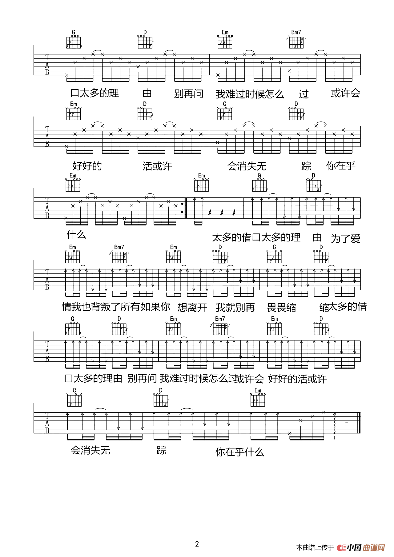 太多吉他谱(葛叔叔制谱版),太多简谱"