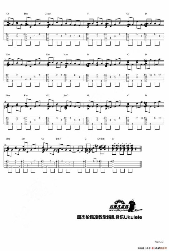 婚礼进行曲(周杰伦曲)(尤克里里谱)吉他谱,简谱"