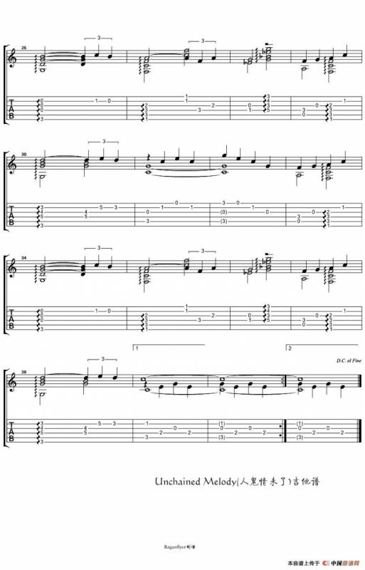 Unchained Melody(电影《人鬼情未了》主题曲)(指弹谱)吉他谱,简谱"