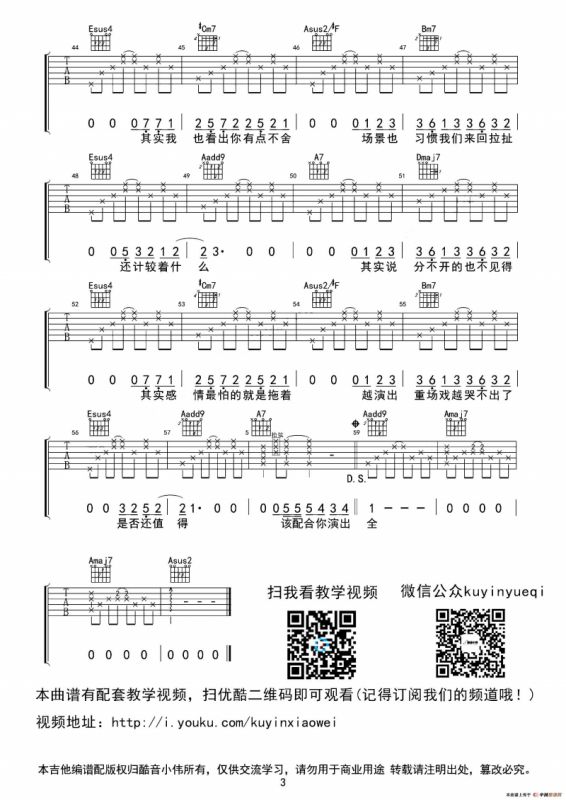 演员(薛之谦A调指法吉他谱)(酷音小伟编配)吉他谱,简谱"