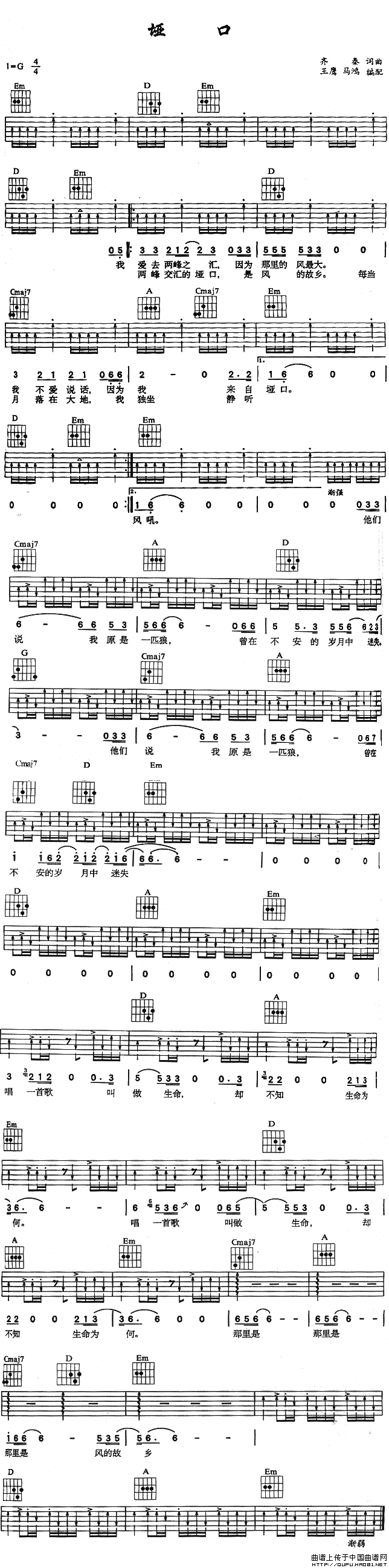 垭口吉他谱,垭口简谱"