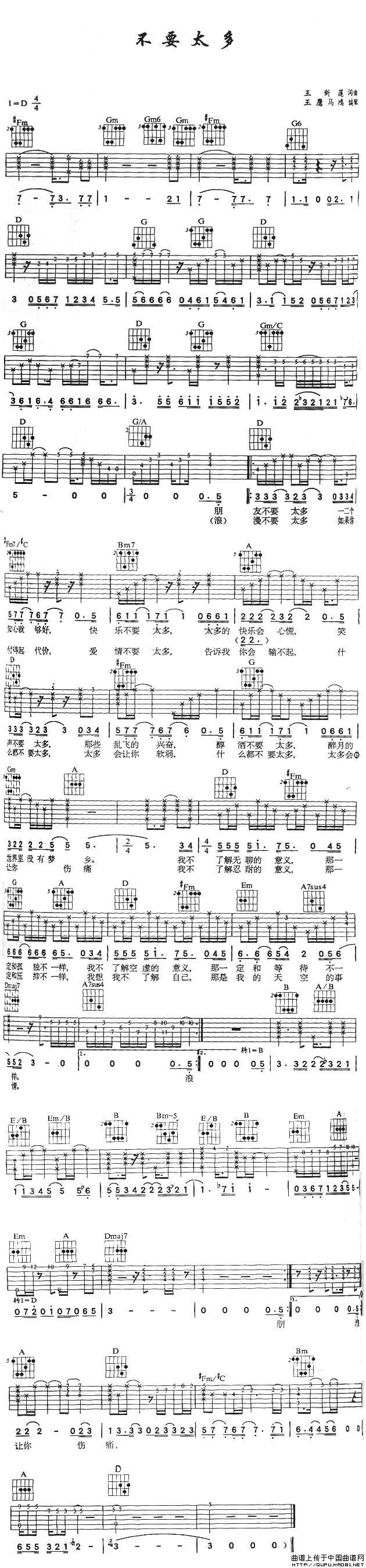 不要太多吉他谱,不要太多简谱"