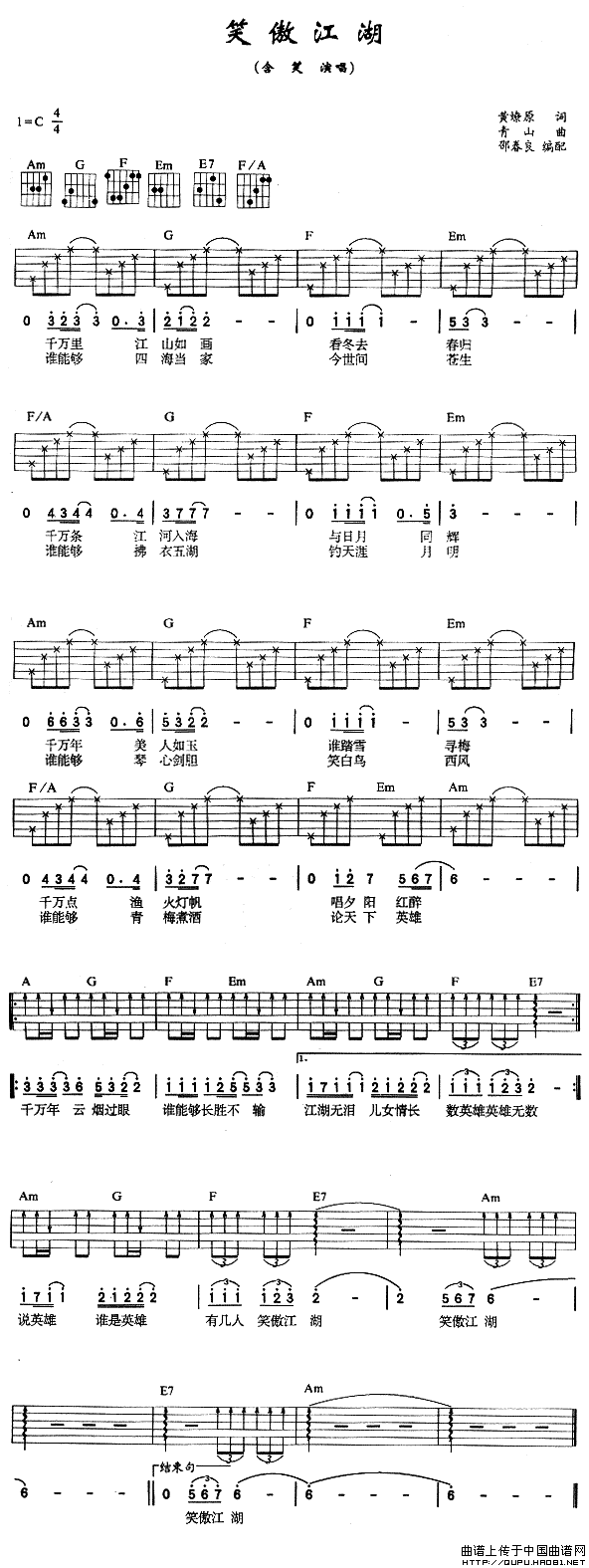 笑傲江湖吉他谱,笑傲江湖简谱"