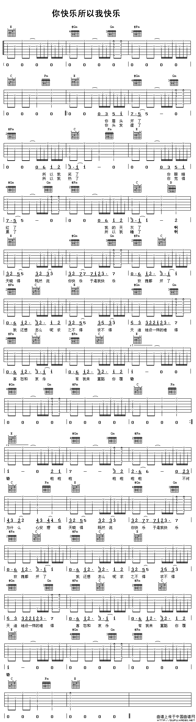 你快乐所以我快乐吉他谱,你快乐所以我快乐简谱"