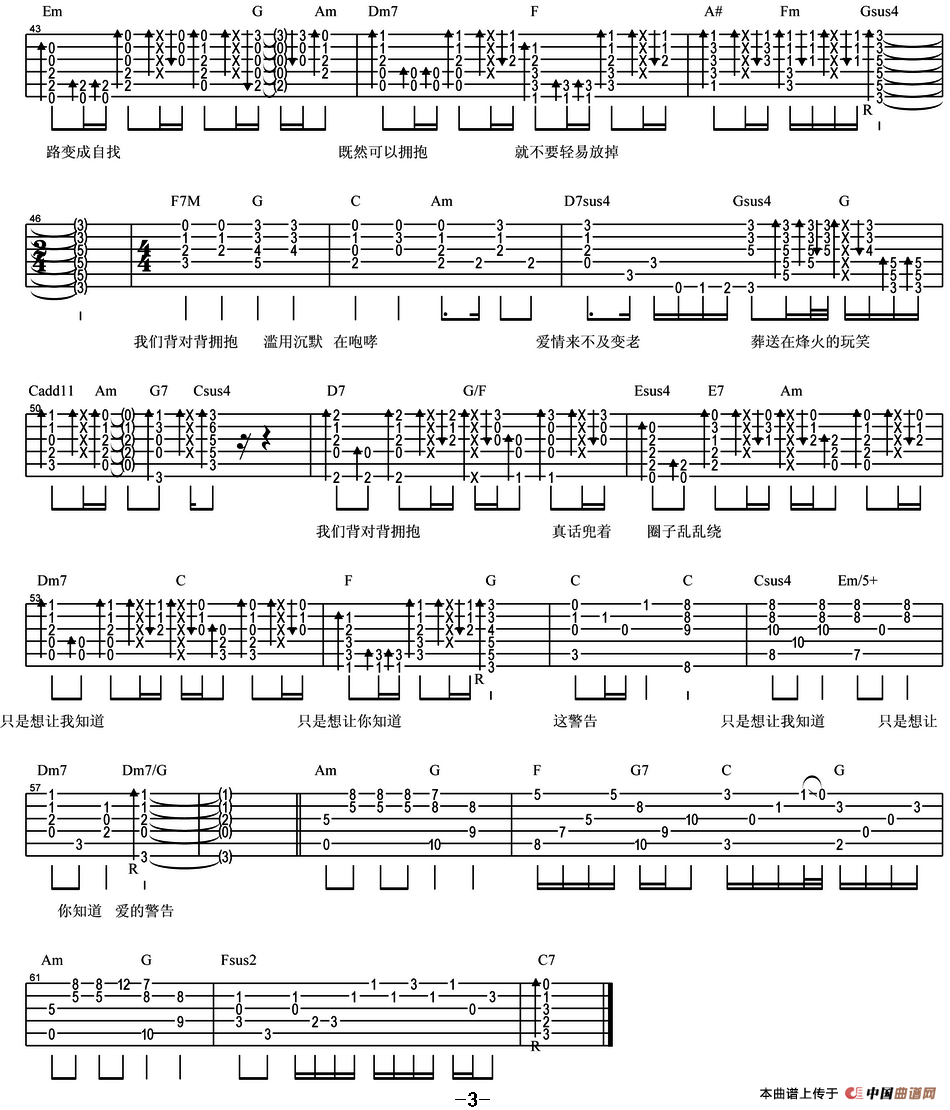 背对背拥抱吉他谱,背对背拥抱简谱"