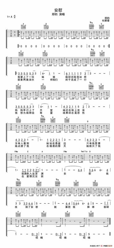 安慰吉他谱,安慰简谱"