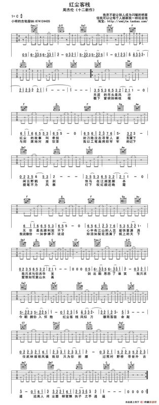 红尘客栈吉他谱,红尘客栈简谱"